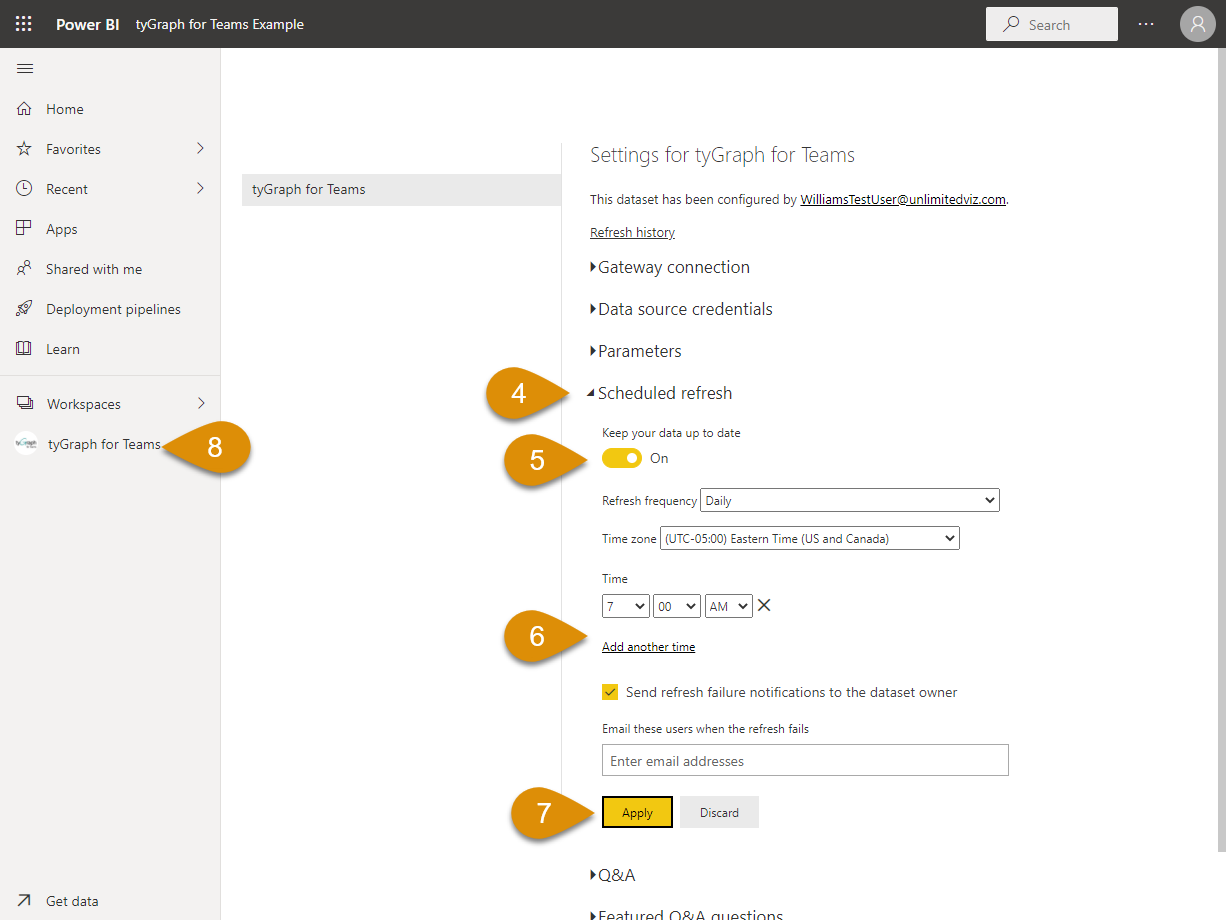 Open the "Scheduled Refresh" panel