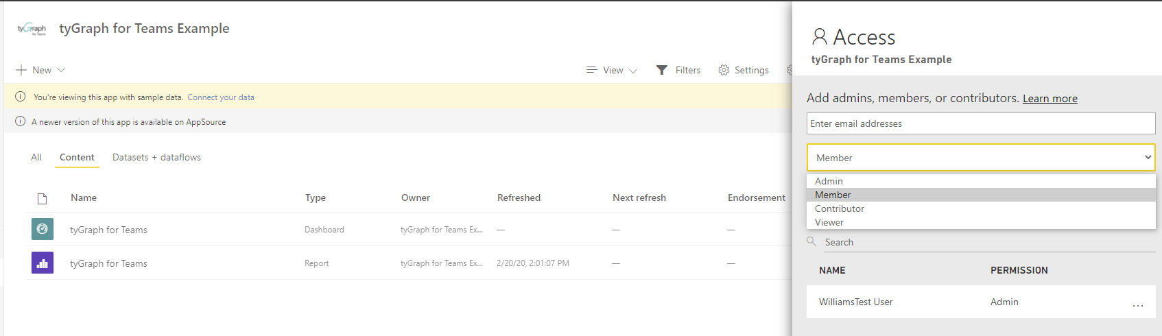 If you're publishing a tyGraph Row Level Secured report (Ex. only showing relevant Teams to Team Admins) check out our tyGraph RLS Report Management for Power BI Apps Guide