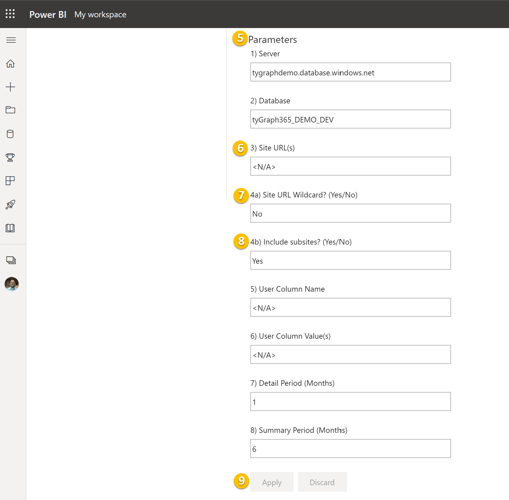 If you want to filter the report by certain URL names you can do so in the parameters governing the source of the tyGraph Dataset. Wildcard filtering is also available as an additional option. You can manage these options through the dataset parameters right in the Power BI workspace settings. In this article we will show you how to do this.