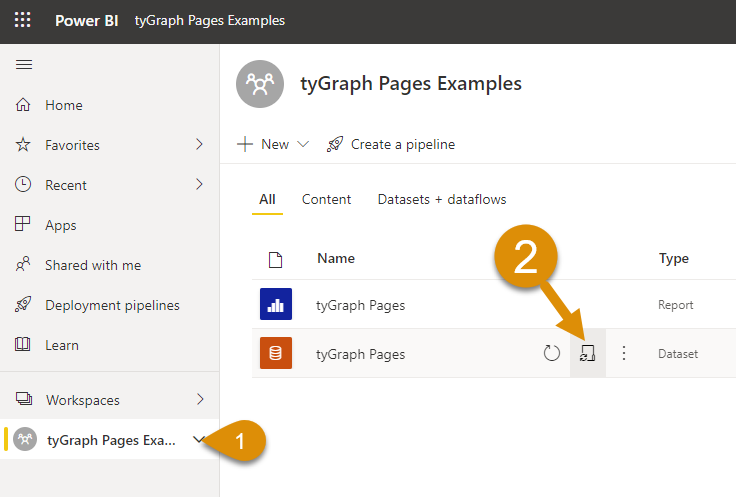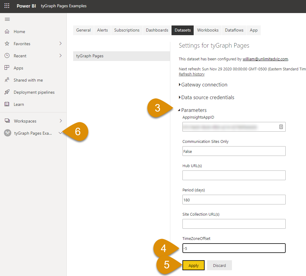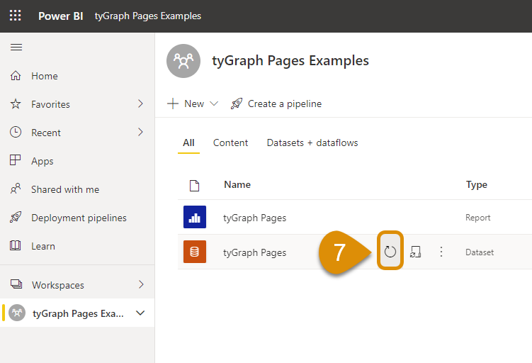 Find tyGraph Pages Dataset and click "Schedule Refresh"