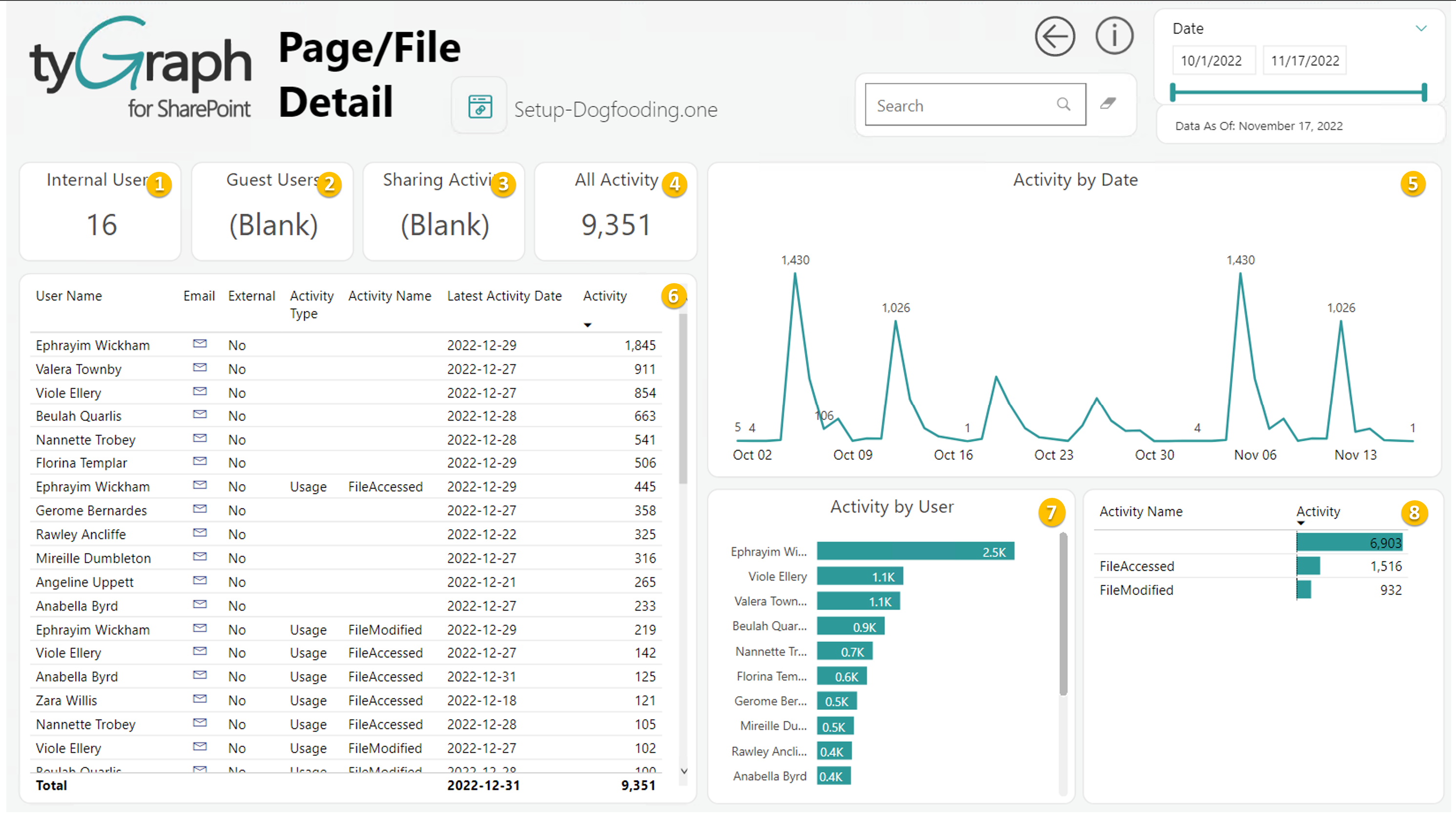 - All unique users from within your tenant who had activity against this selected, site, or object.