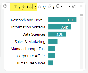 The "Top Areas by Interactions" visual allows you to explore the user org/region hierarchy and pinpoint the leading areas in terms of interactions within conversations. By hovering over this visual, you can utilize the up and double-down arrows to navigate through the hierarchy. The hierarchical structure includes Building, Business Unit, City, Country, Department, Job Title, Organization, State/Province, and Zip/Postal Code.