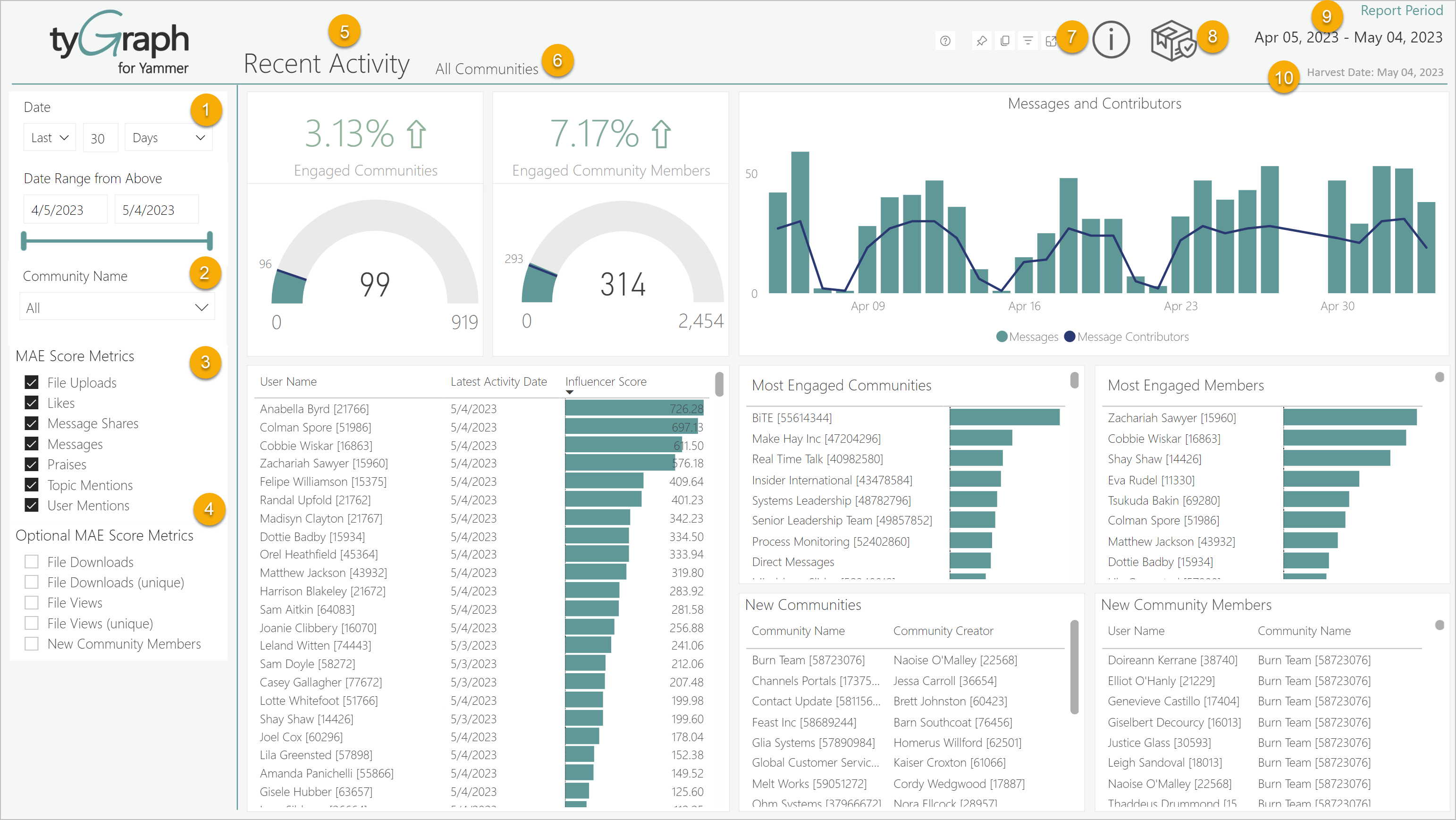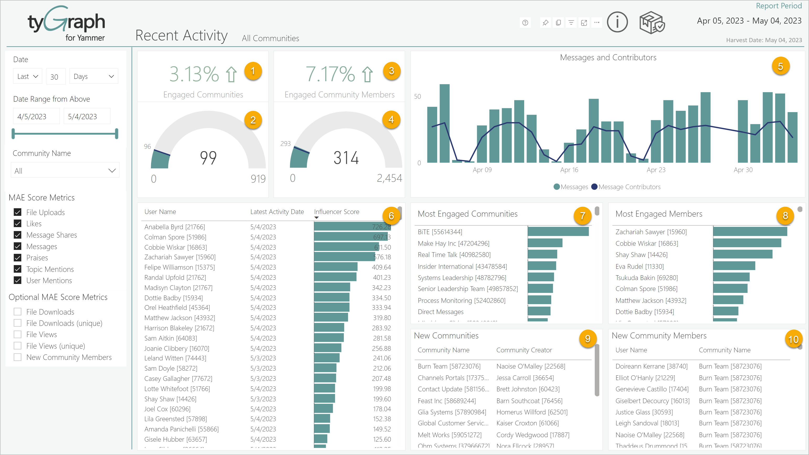 - Allows you to toggle between NEW and LEGACY MAE Score. You can compare what your MAE Score would have been if it were left unchanged in the legacy mode. This also applies to measures built on the MAE Score, such as Engaged Members, Engaged Communities, and Engaged Community Members. Check the link here for more info: MAE Score Update: Support (tygraph.com)